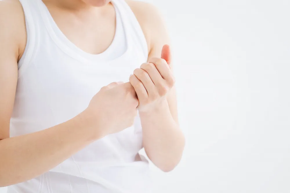 手のひらから親指、人差し指、中指、薬指の親指側半分にしびれや痛みが生じます。緻密な作業が難しくなる、朝起きた時に激しい痛みが生じる、親指に力が入らない、親指の付け根部分が細くなる、寝ている時に痛くて目が覚めるといった症状が代表的です。